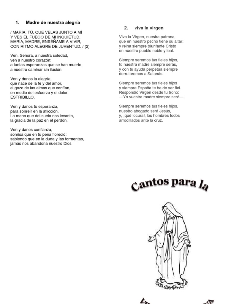 Cancionero Catolico Con Rosario Maria Madre De Jesus Cristo Titulo - Maria tu que velas junto a mi.
